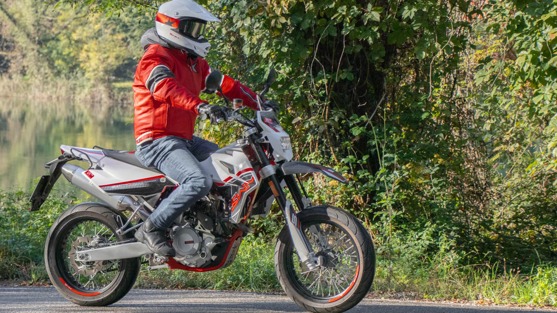 Stabilita a bezpečnost: SM 500 R se vyznačuje brzdovým systémem s ABS vpředu a vzadu, který lze vzadu deaktivovat pro ostrou jízdu na okruhu.